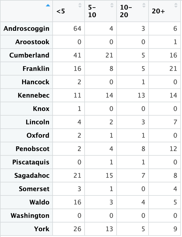 maine_counties <- c("Androscoggin", "Aroostook", "Cumberland", "Franklin", "Hancock", "Kennebec", "Knox", "Lincoln", "Oxford", "Penobscot", "Piscataquis",